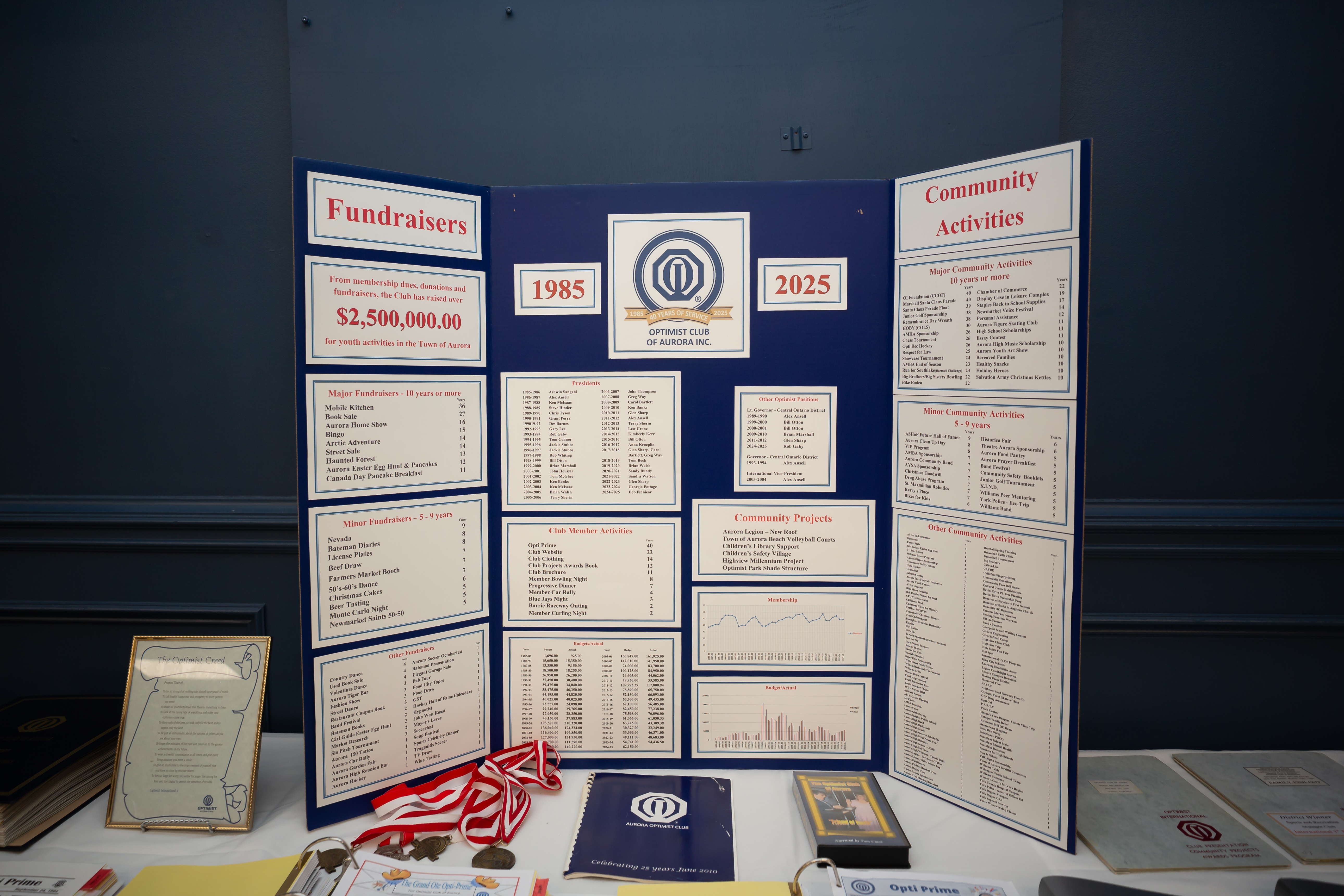 Alex brought along quite a bit of memorabilia, and one real important point was mind blowing in the sense that over these 40 years we have contributed over $2.5 million to supporting youth in Aurora. We work hard year after year but we never really stop and think just how important our club is to our community.